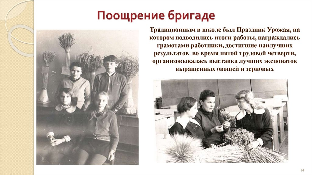 Поощрение бригадеТрадиционным в школе был Праздник Урожая, на