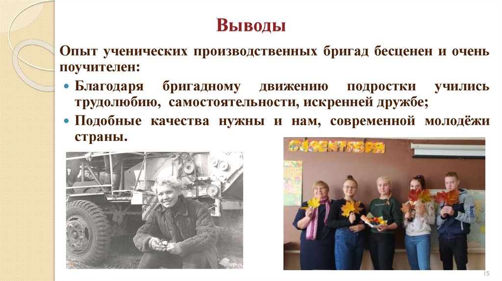 ВыводыОпыт ученических производственных бригад бесценен и очень
