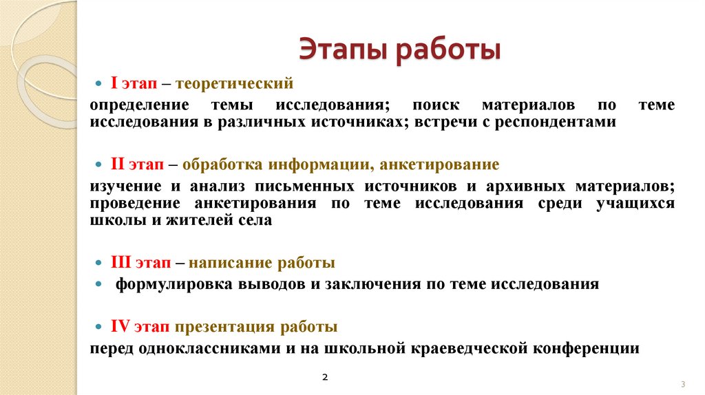 Этапы работыI этап – теоретический