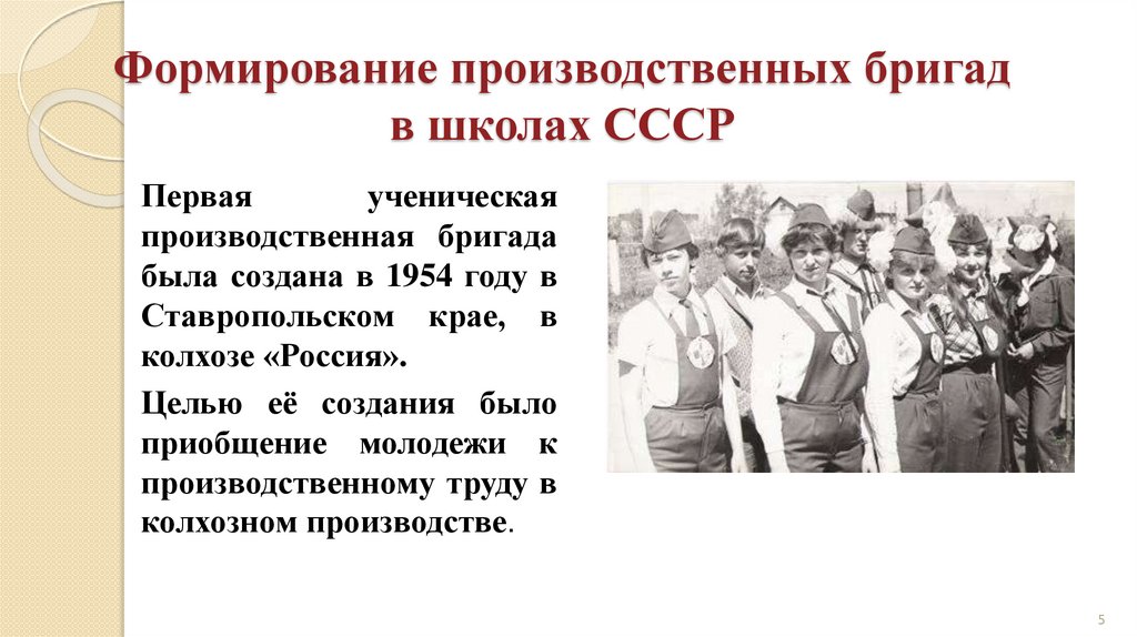 Формирование производственных бригадв школах СССР