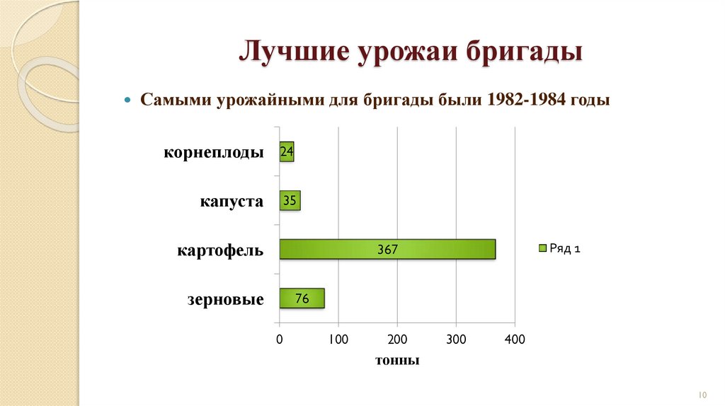 Лучшие урожаи бригадыСамыми урожайными для бригады были 1982-1984 годы