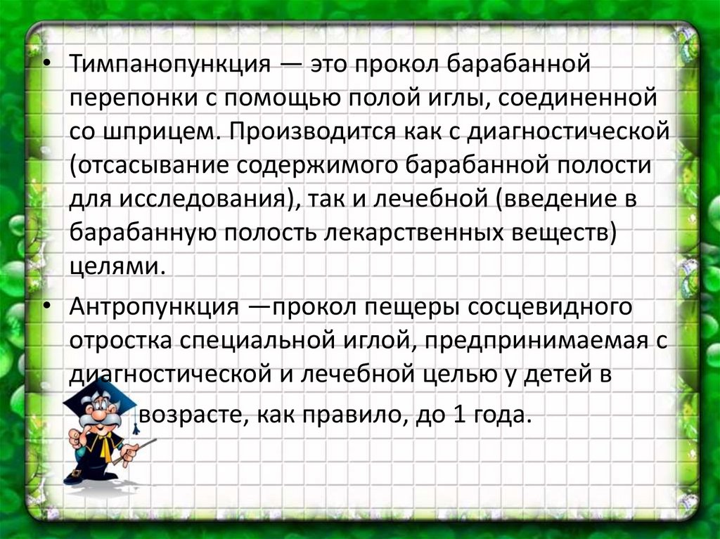 • Антропункция —прокол пещеры сосцевидного