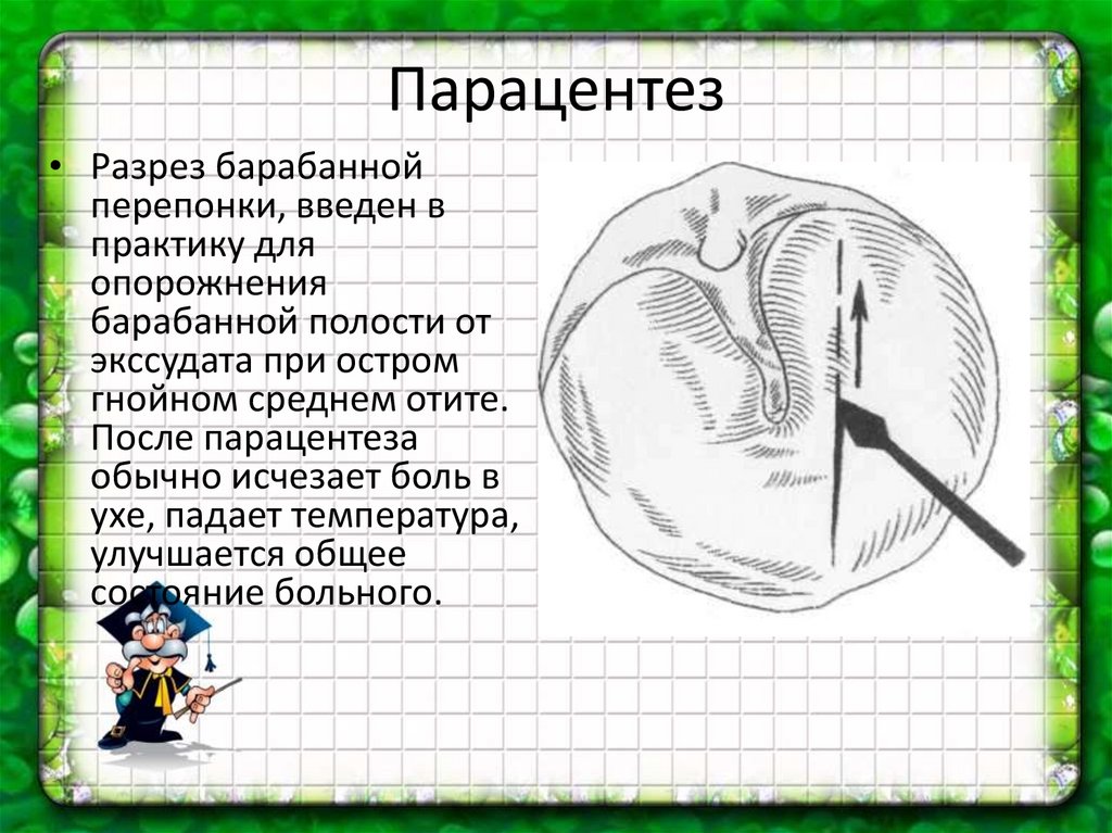 Парацентез• Разрез барабанной