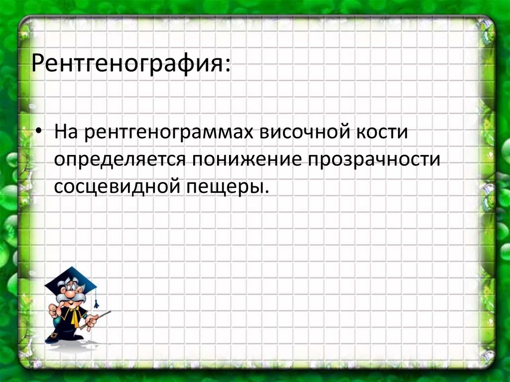 Рентгенография:• На рентгенограммах височной кости