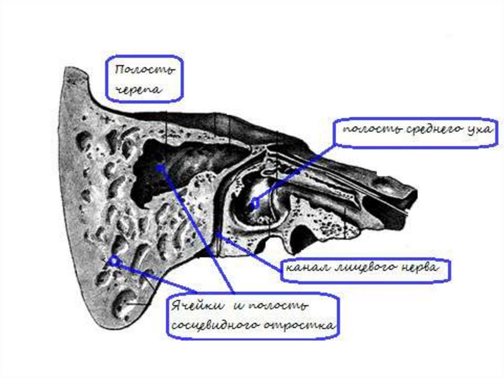 процесс из среднего уха проникает только в