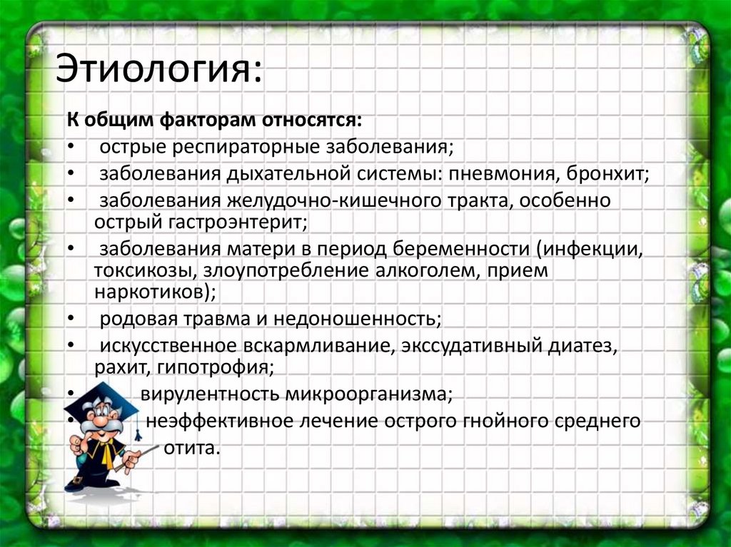 Этиология:К общим факторам относятся: