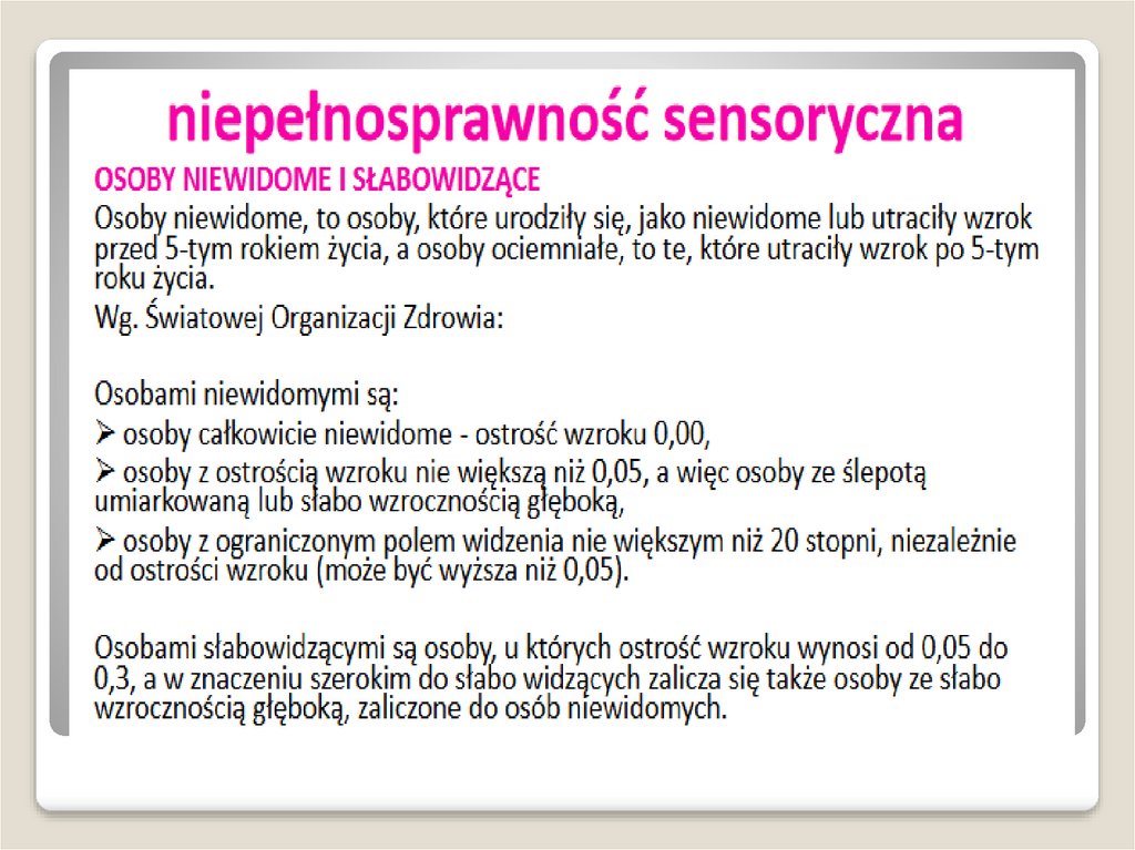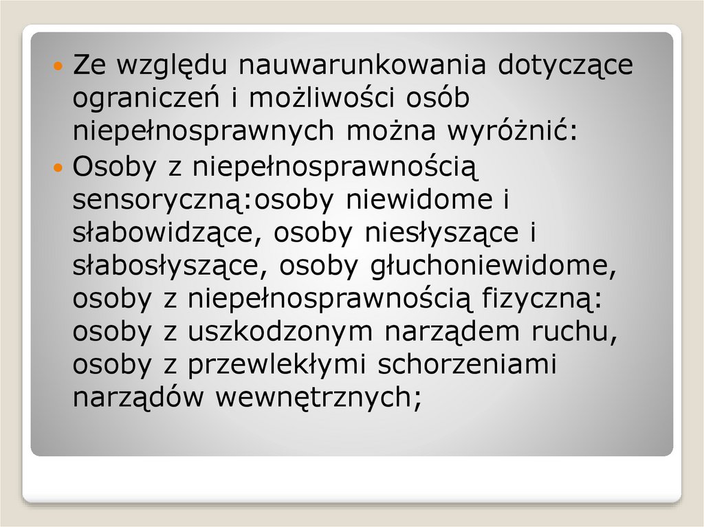 Ze względu nauwarunkowania dotycząceograniczeń i możliwości osób