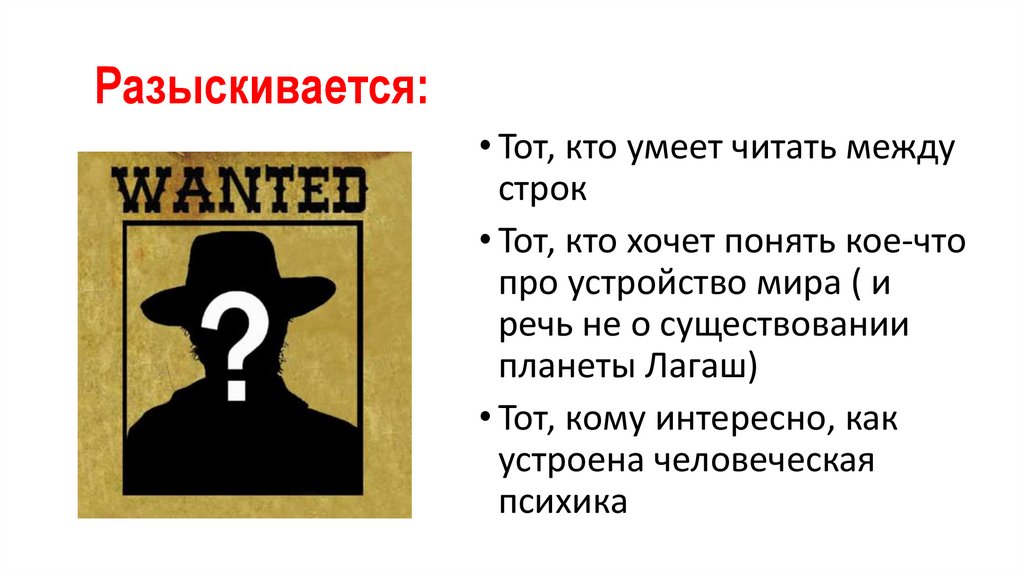 Разыскивается:• Тот, кто умеет читать между