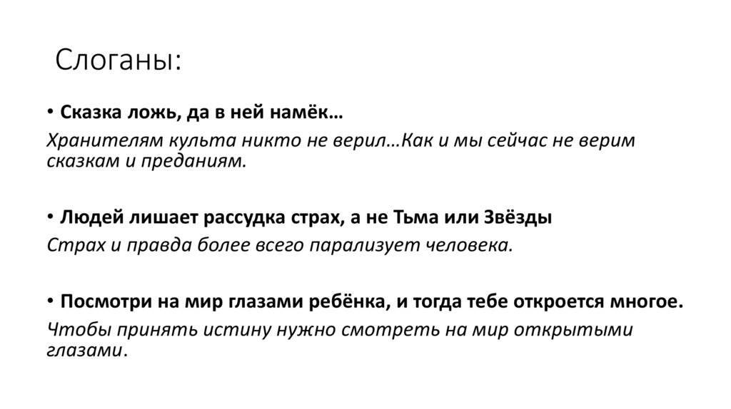Слоганы:• Сказка ложь, да в ней намёк…