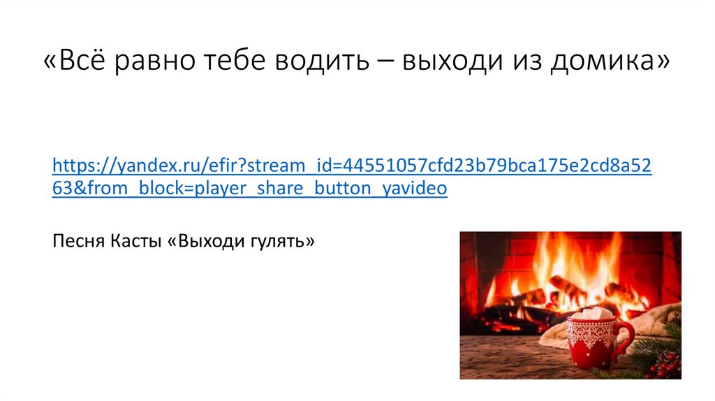 «Всё равно тебе водить – выходи из домика»https://yandex.ru/efir?stream_id=44551057cfd23b79bca175e2cd8a52