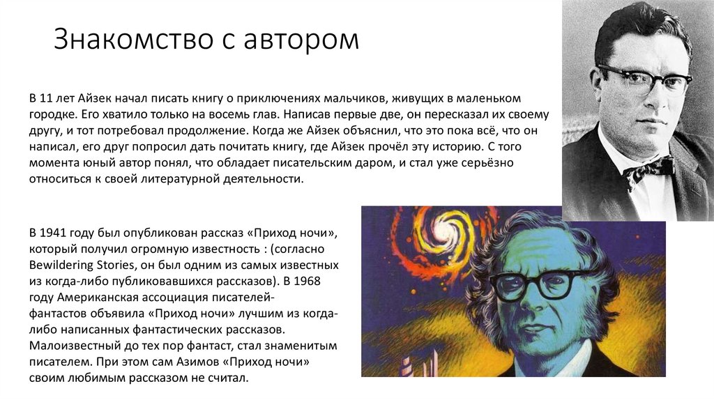 писателем. При этом сам Азимов «Приход ночи»