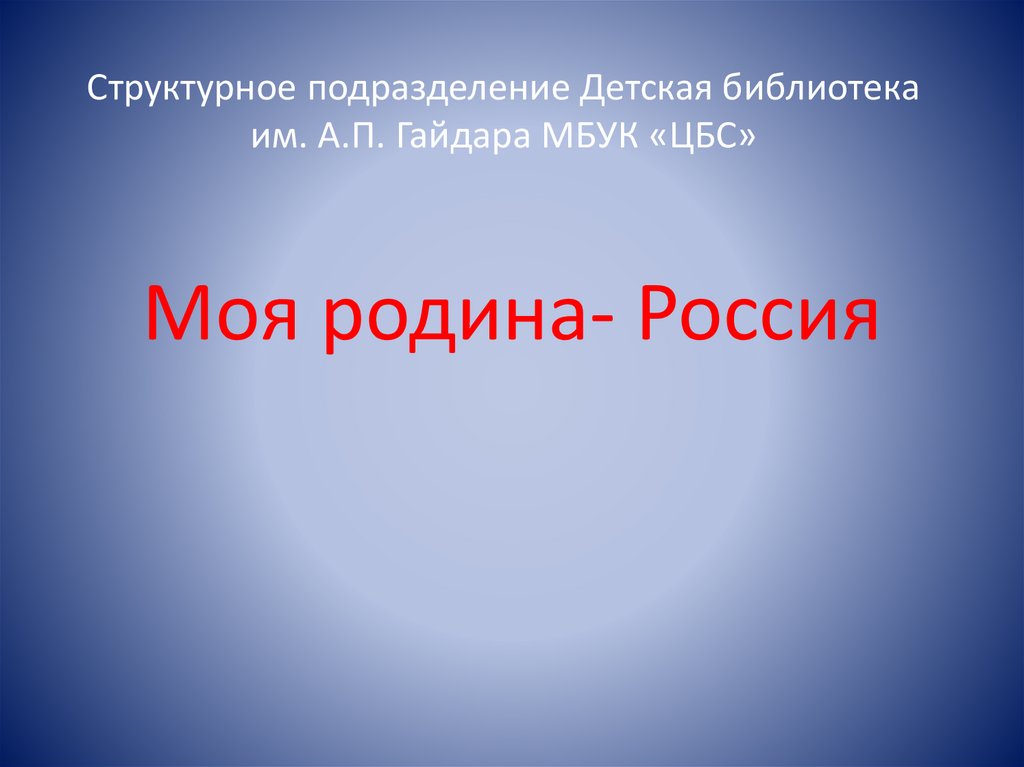 Структурное подразделение Детская библиотекаим. А.П. Гайдара МБУК «ЦБС»