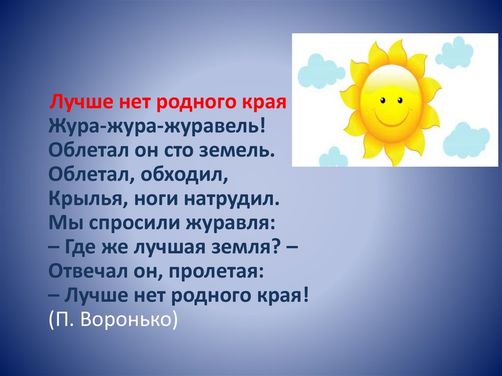 Лучше нет родного краяЖура-жура-журавель!