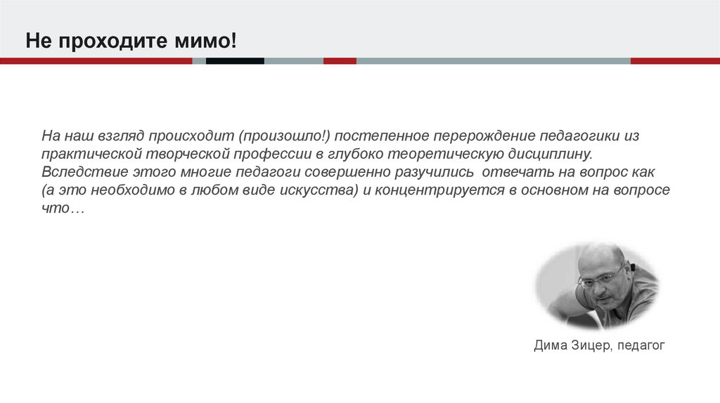 Не проходите мимо!На наш взгляд происходит (произошло!) постепенное перерождение педагогики из