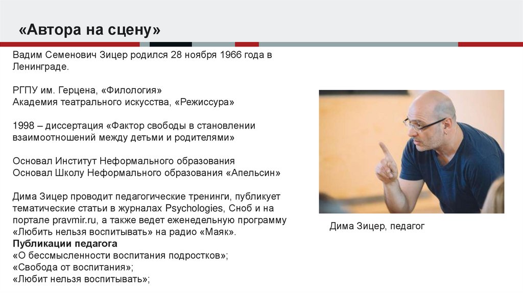 «Автора на сцену»Вадим Семенович Зицер родился 28 ноября 1966 года в