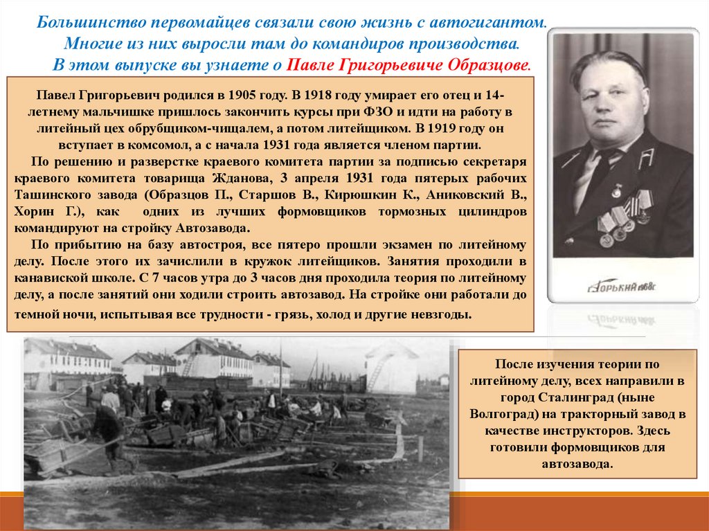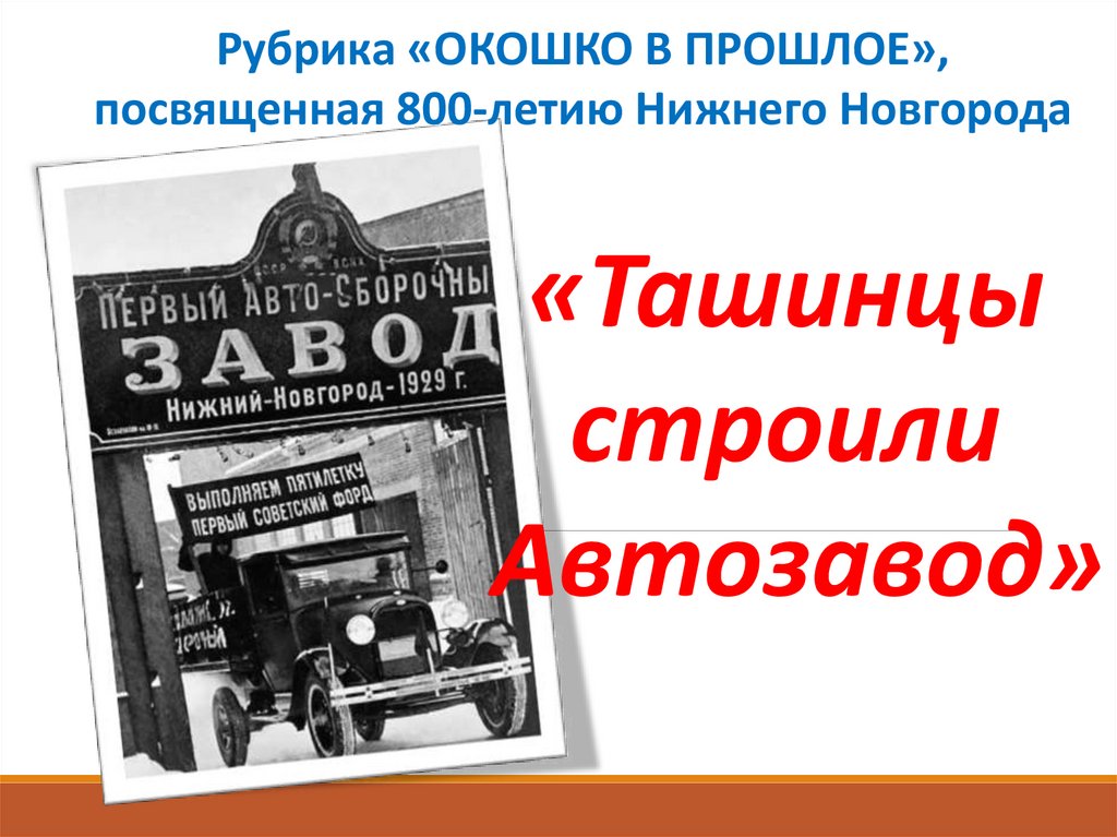 На строительстве Горьковского автозавода, одного из первенцев первой пятилетки, покомсомольским и партийным путевкам работали и наши земляки-ташинцы.