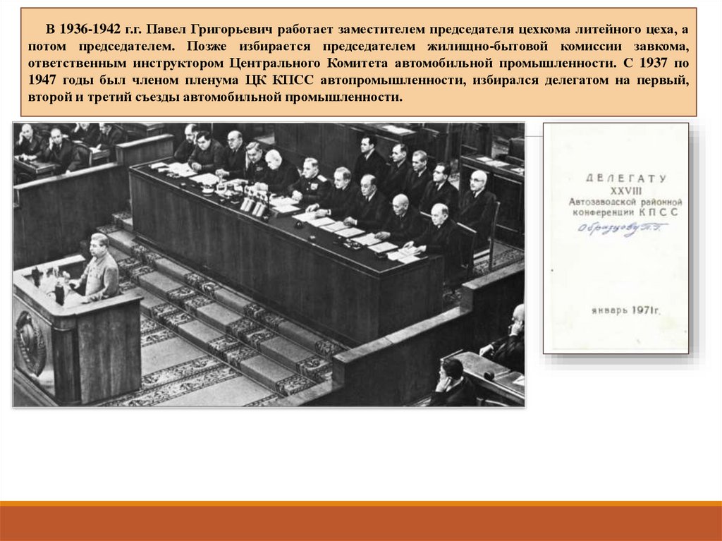 1947 годы был членом пленума ЦК КПСС автопромышленности, избирался делегатом на первый,