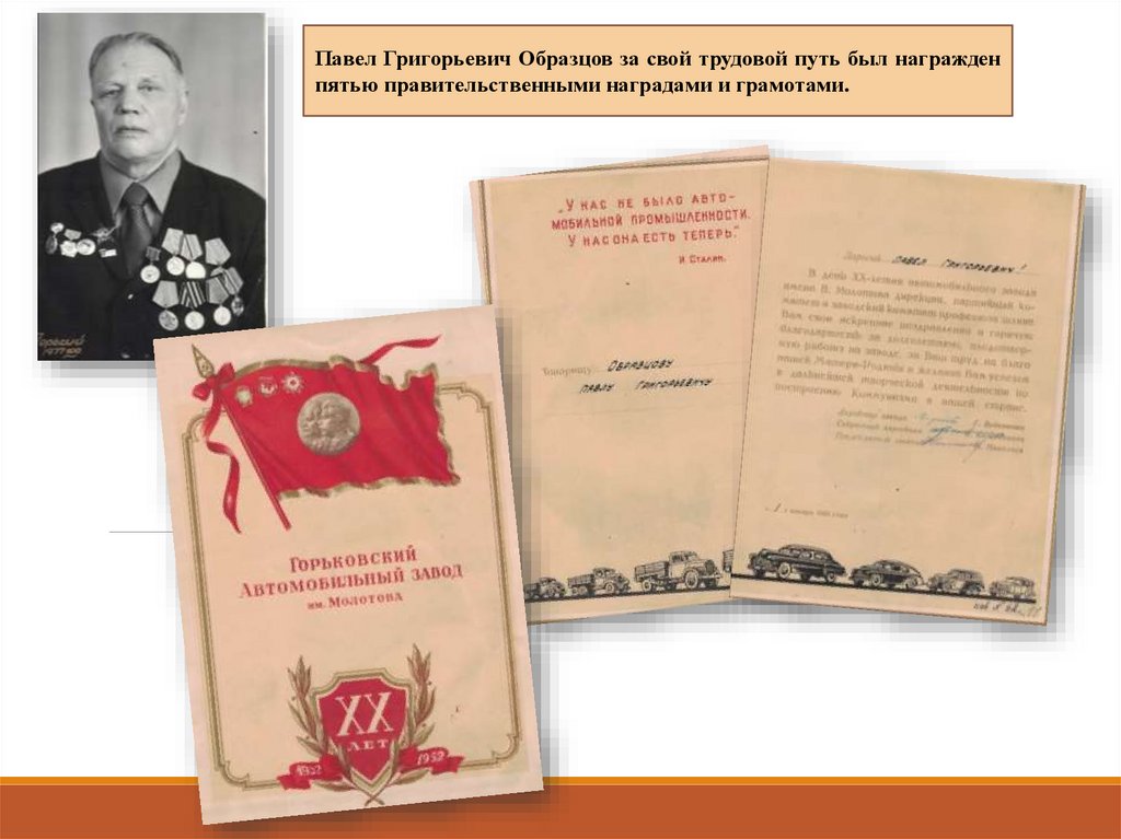 Павел Григорьевич Образцов за свой трудовой путь был награжденпятью правительственными наградами и грамотами.