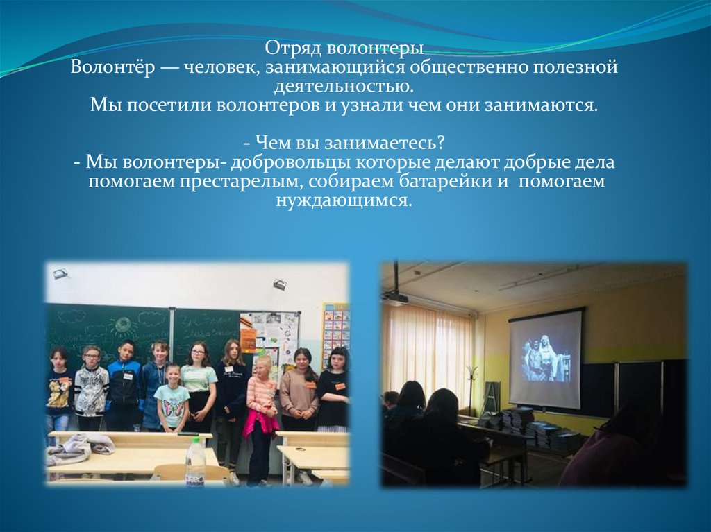 - Мы волонтеры- добровольцы которые делают добрые дела