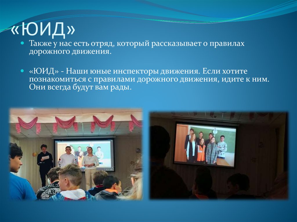 «ЮИД»Также у нас есть отряд, который рассказывает о правилах