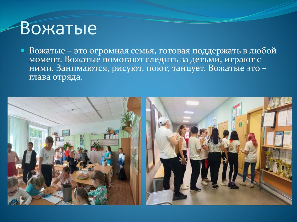 ними. Занимаются, рисуют, поют, танцует. Вожатые это –