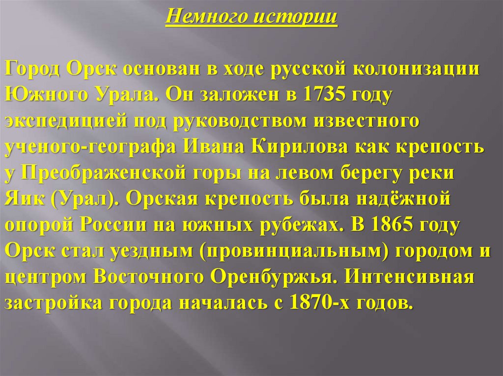 Орск находится сразу в двух частях света.Орск входит в первую десятку городов России по