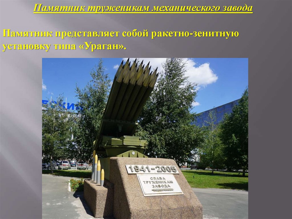Памятник труженикам механического заводаПамятник представляет собой ракетно-зенитную