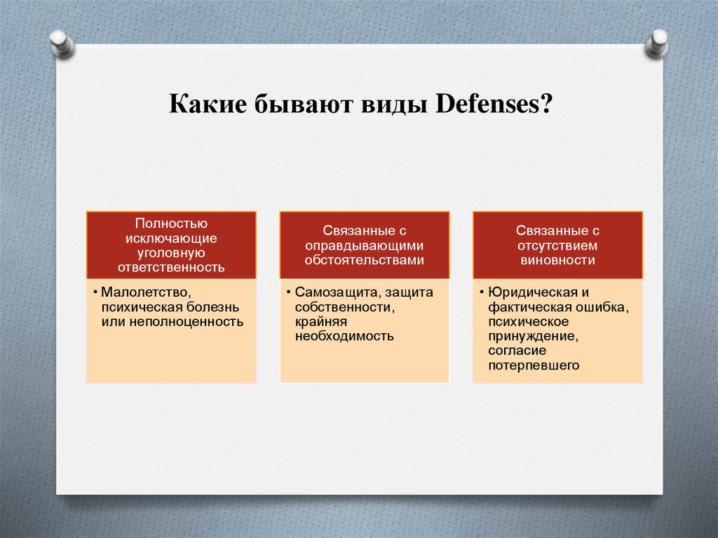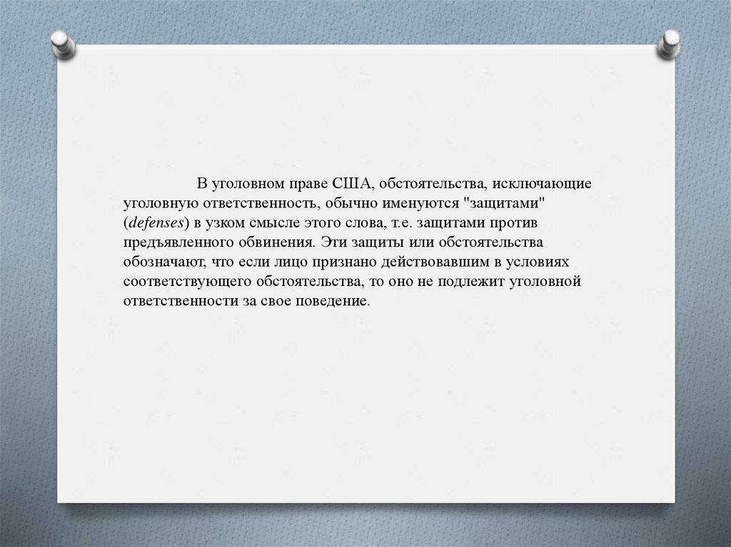 В уголовном праве США, обстоятельства, исключающиеуголовную ответственность, обычно именуются "защитами"