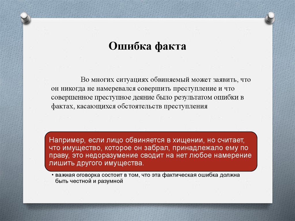 Ошибка фактаВо многих ситуациях обвиняемый может заявить, что