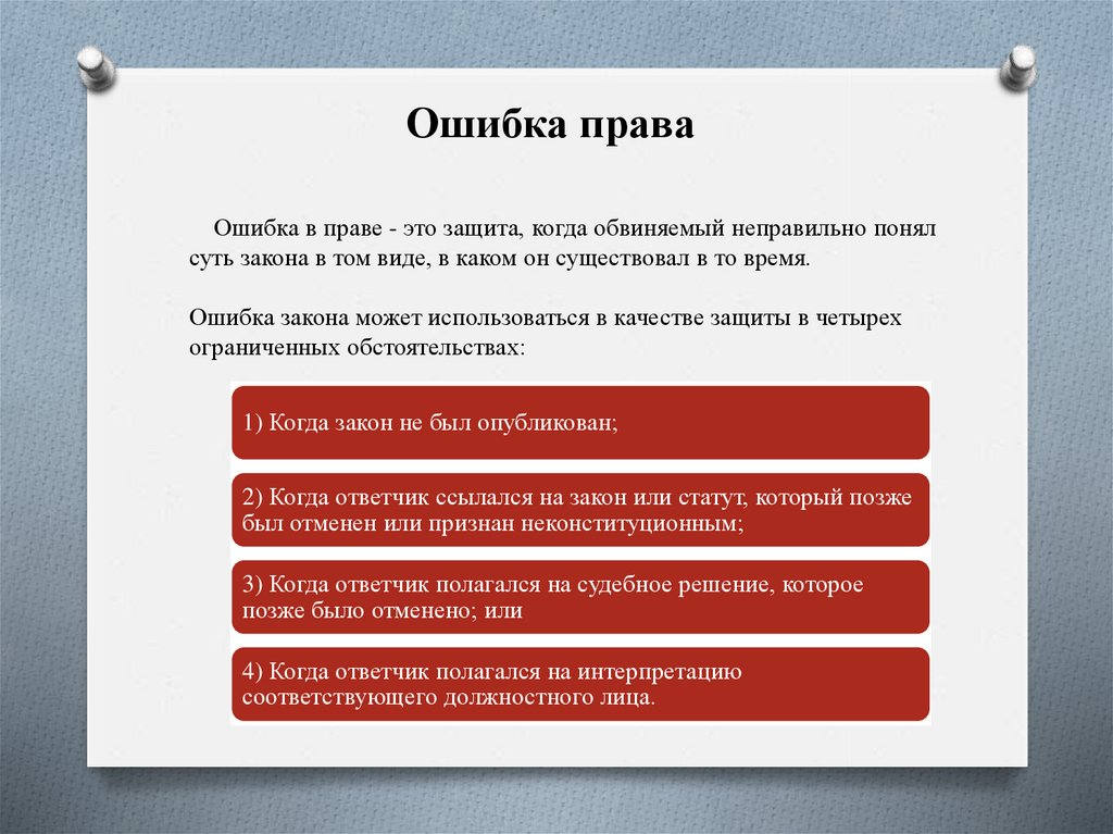 Ошибка праваОшибка в праве - это защита, когда обвиняемый неправильно понял