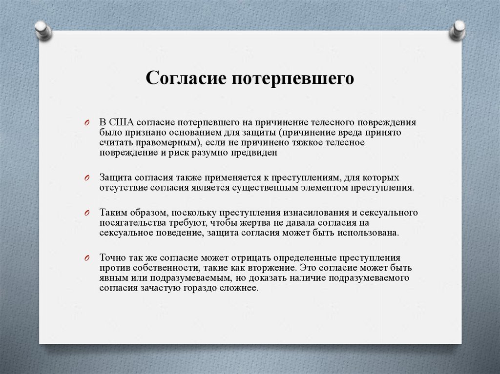 Закон не позволяет жертве давать согласие, например, в случае изнасилования.
