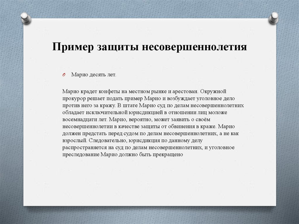 несовершеннолетии в качестве защиты от обвинения в краже. Марио