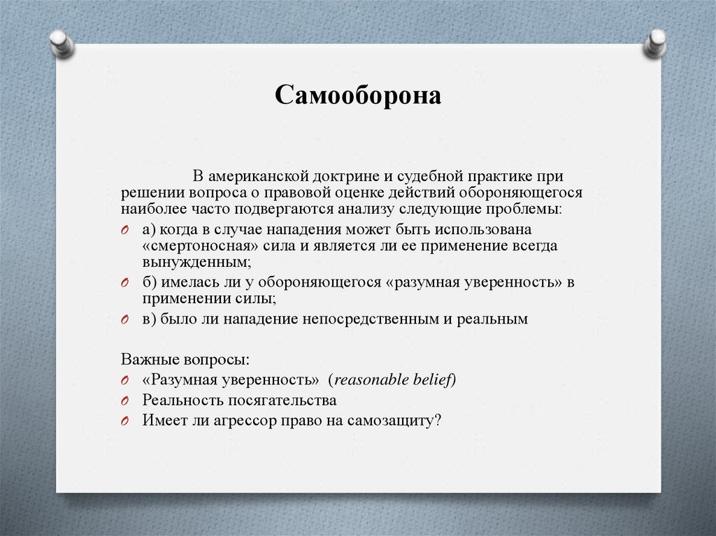 O б) имелась ли у обороняющегося «разумная уверенность» в
