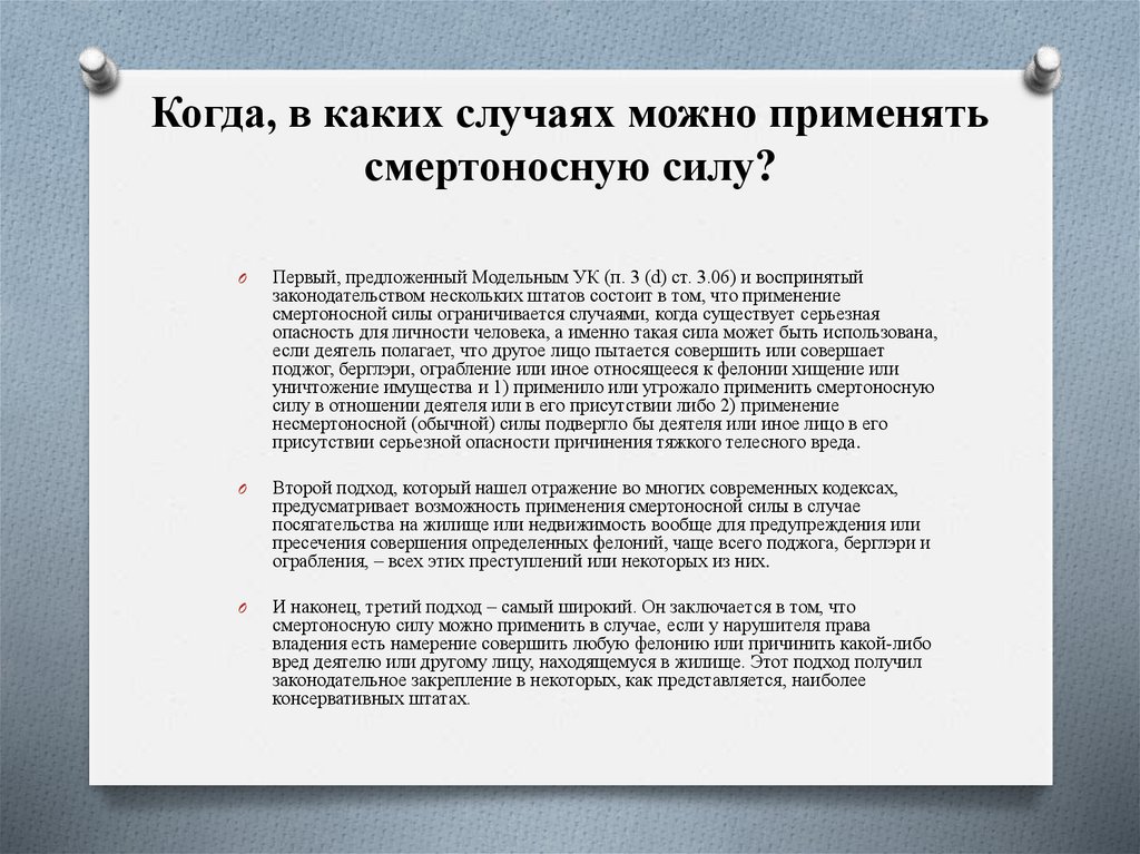 Когда, в каких случаях можно применятьсмертоносную силу?