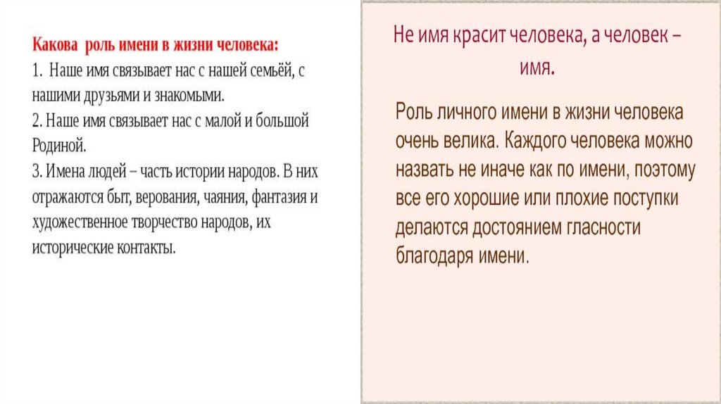ИМЕНИ В ЖИЗНИ ЧЕЛОВЕКА.