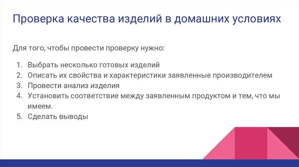 Проверка качества изделий в домашних условияхДля того, чтобы провести проверку нужно: