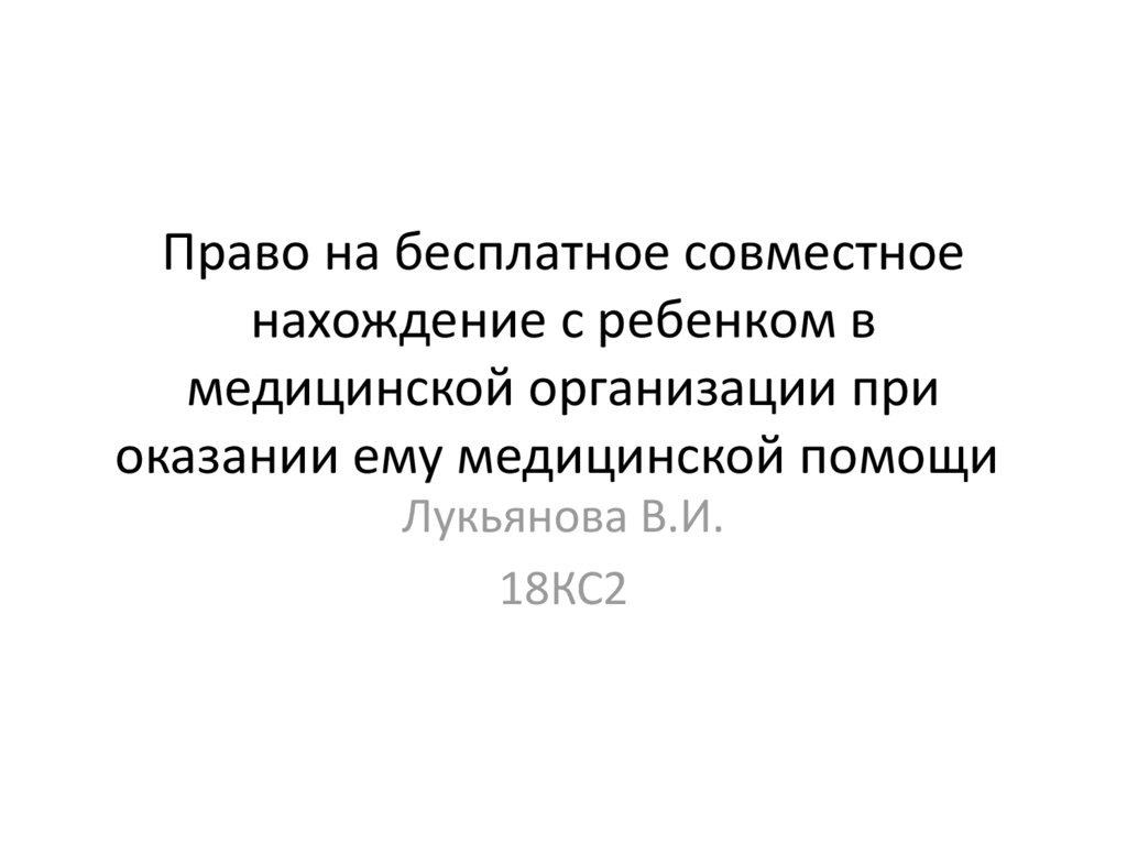 Право на бесплатное совместное нахождение с ребенком в медицинской организации при оказании ему медицинской помощи