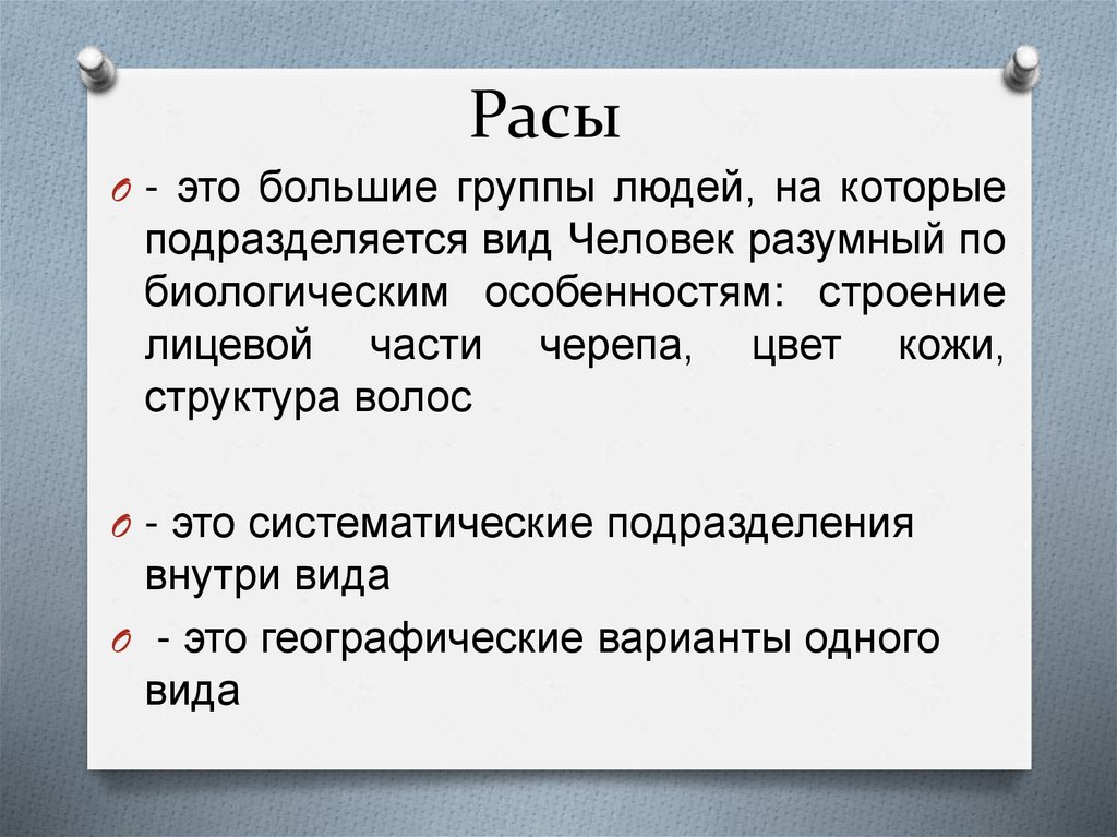 РасыO - это большие группы людей, на которые