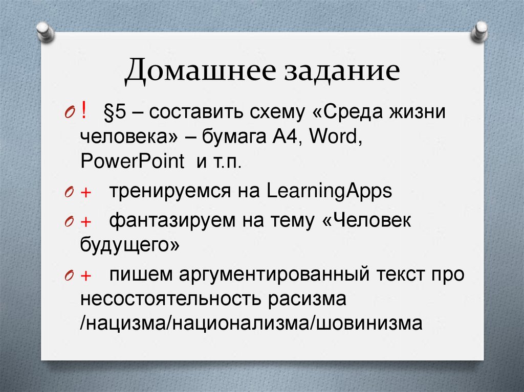 Домашнее заданиеO ! §5 – составить схему «Среда жизни