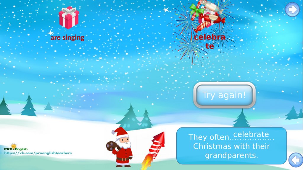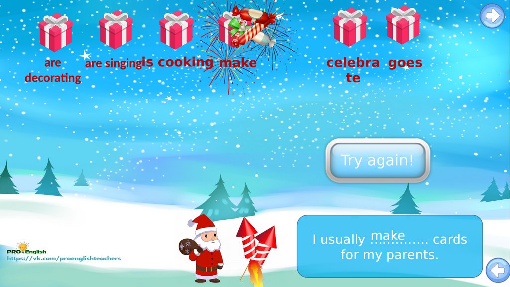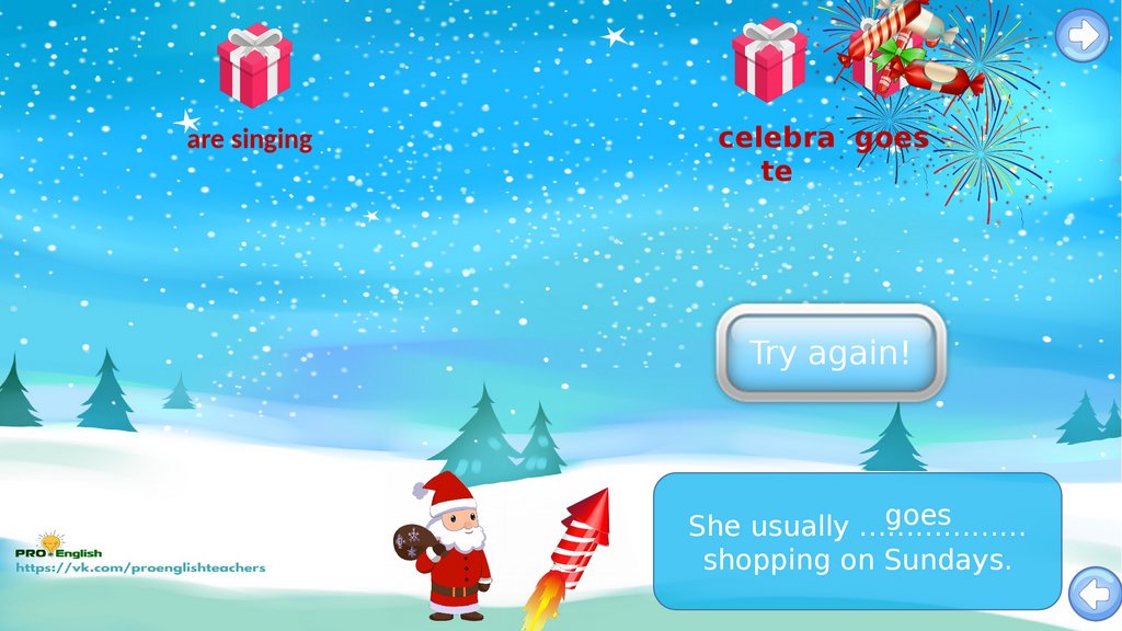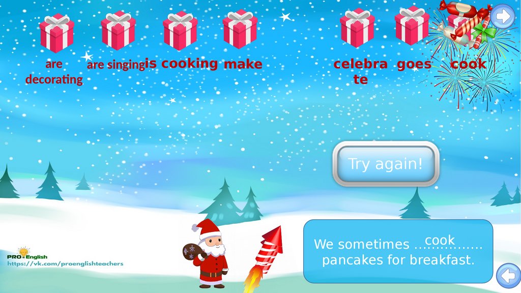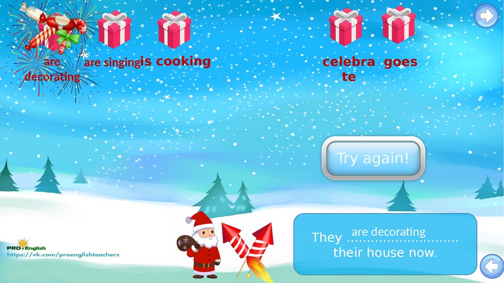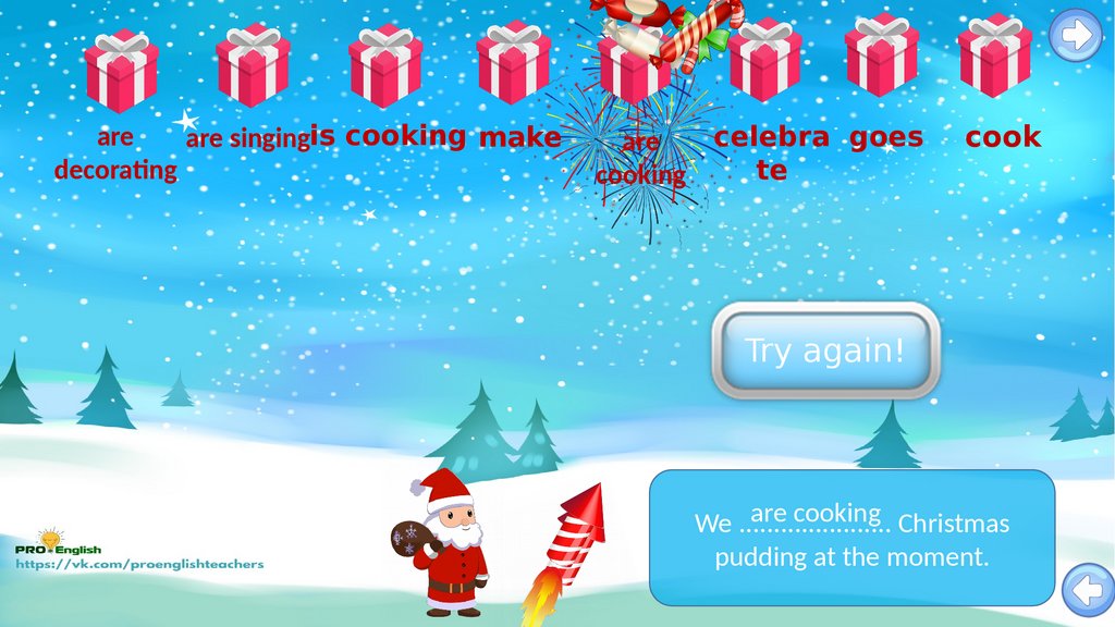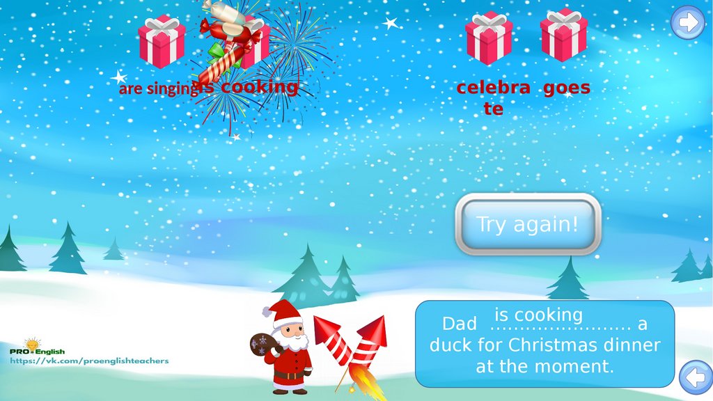 Santas candy rain game.present simple vs present continuous