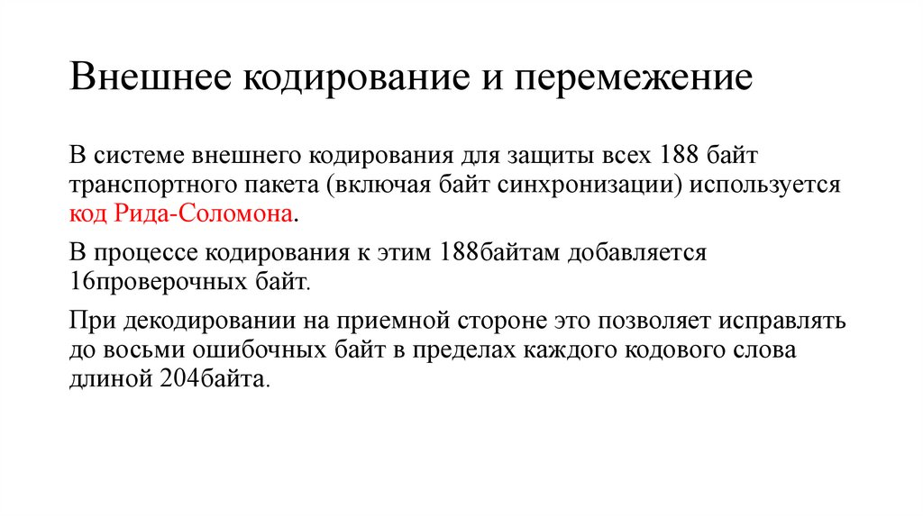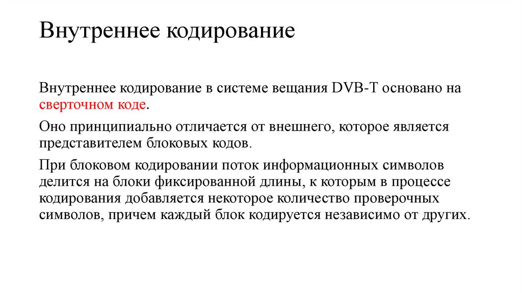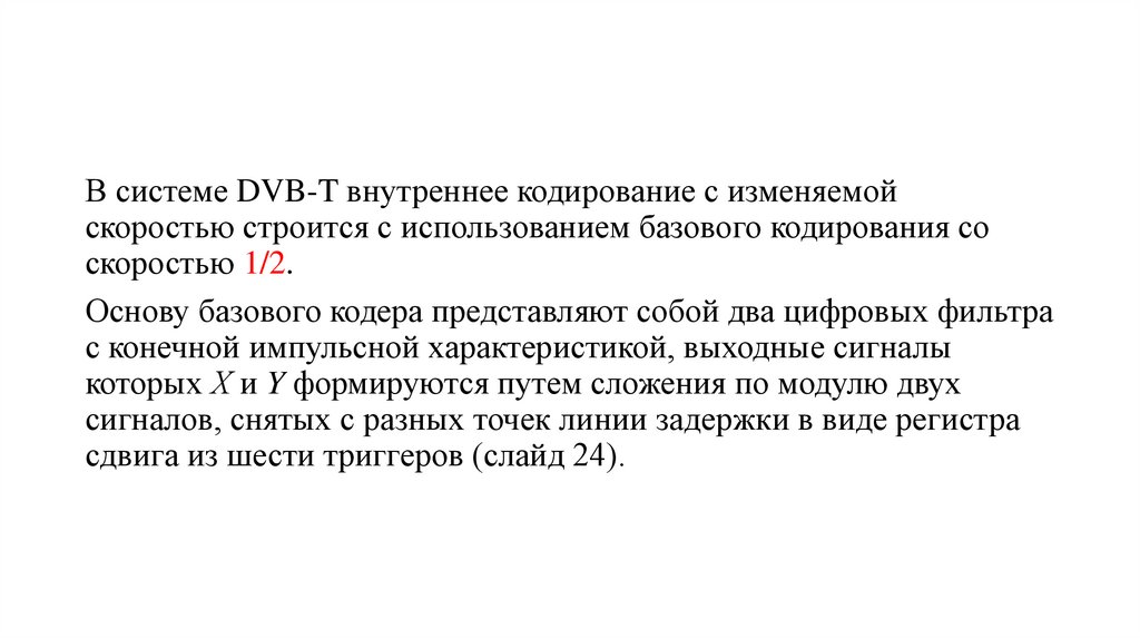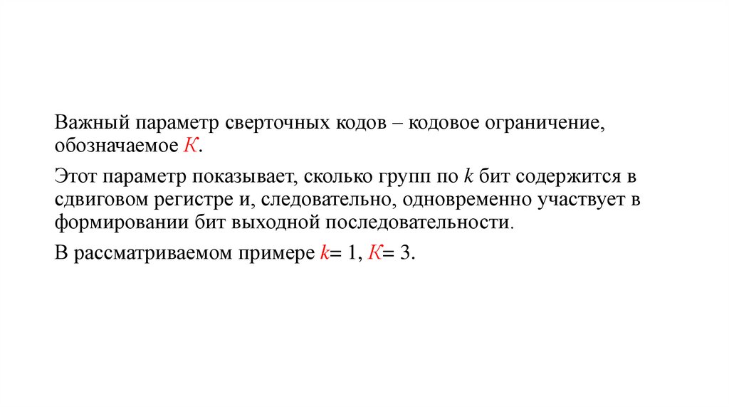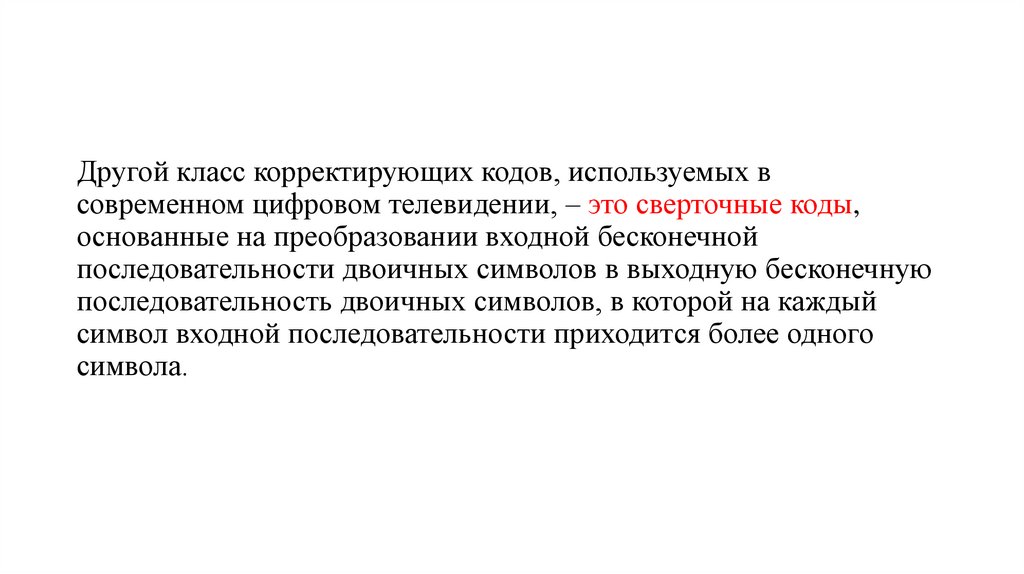 Другой класс корректирующих кодов, используемых всовременном цифровом телевидении, – это сверточные коды,