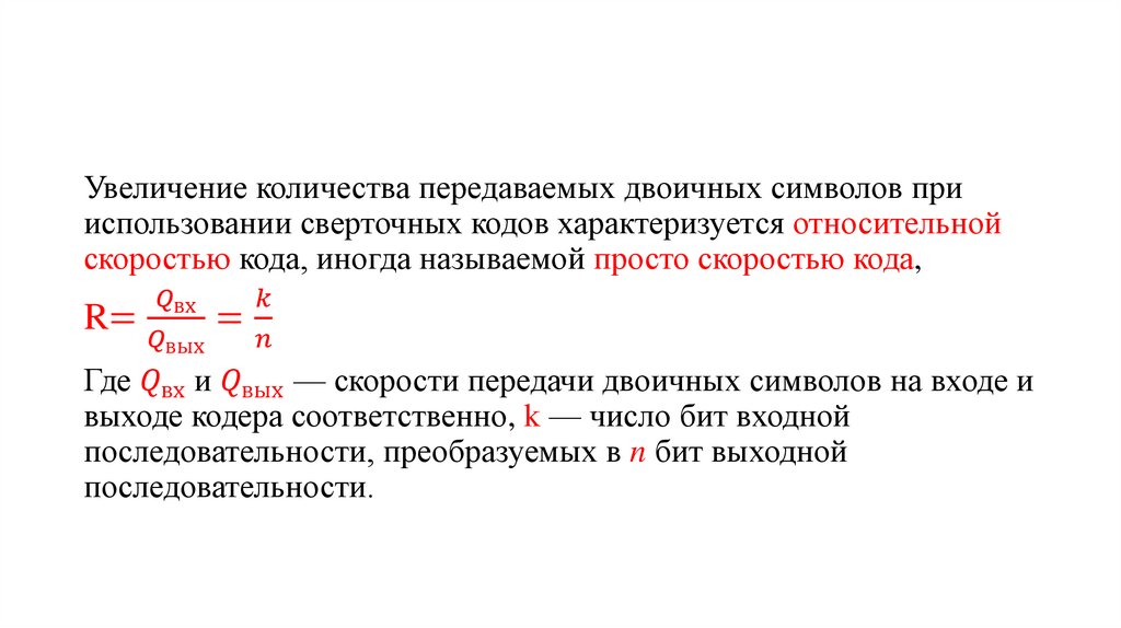 Увеличение количества передаваемых двоичных символов прииспользовании сверточных кодов характеризуется относительной