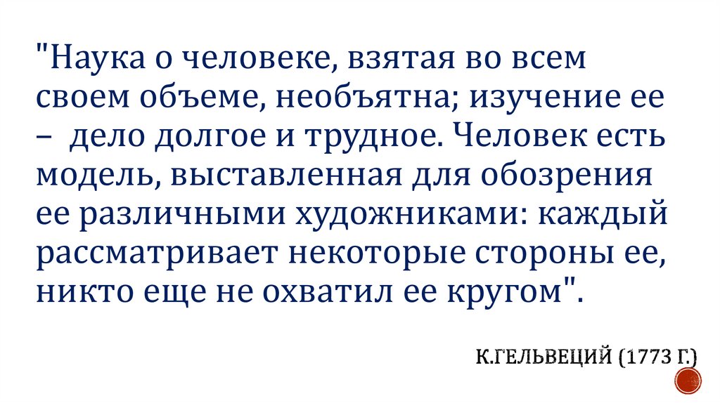 "Наука о человеке, взятая во всемсвоем объеме, необъятна; изучение ее