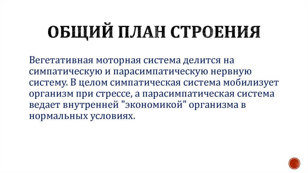 Вегетативная моторная система делится насимпатическую и парасимпатическую нервную
