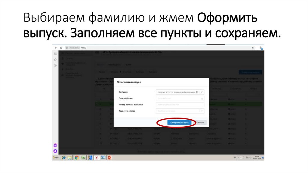 Выбираем фамилию и жмем Оформитьвыпуск. Заполняем все пункты и сохраняем.