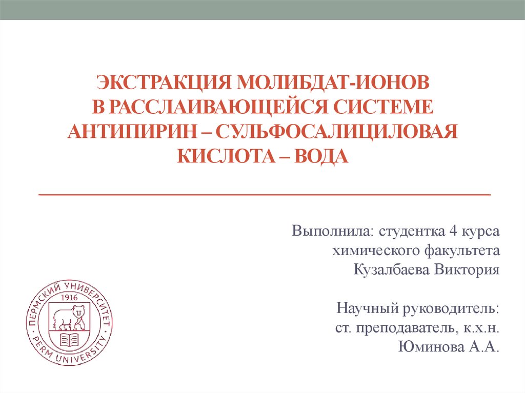 Экстракция молибдат-ионов в расслаивающейся системе антипирин – сульфосалициловая кислота – вода