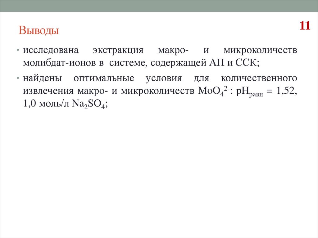 извлечения макро- и микроколичеств MoO42-: рНравн = 1,52,