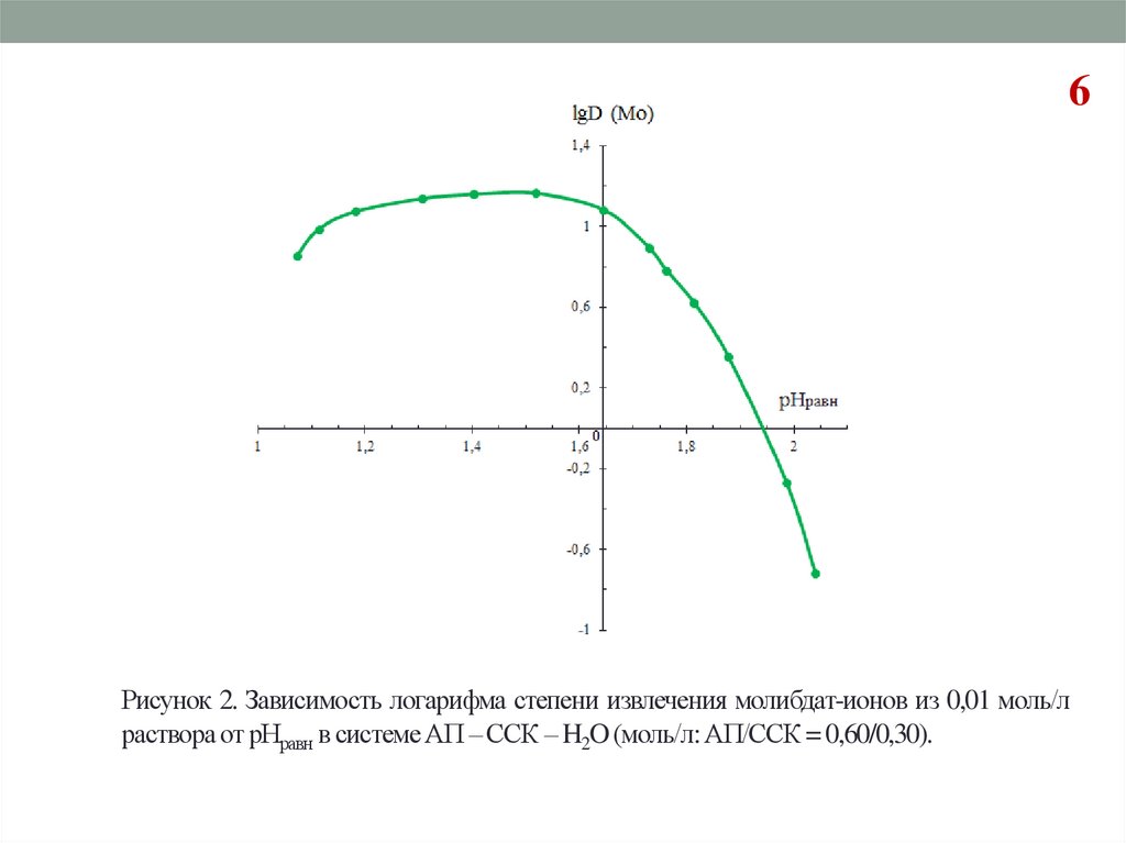 6Рисунок 2. Зависимость логарифма степени извлечения молибдат-ионов из 0,01 моль/л