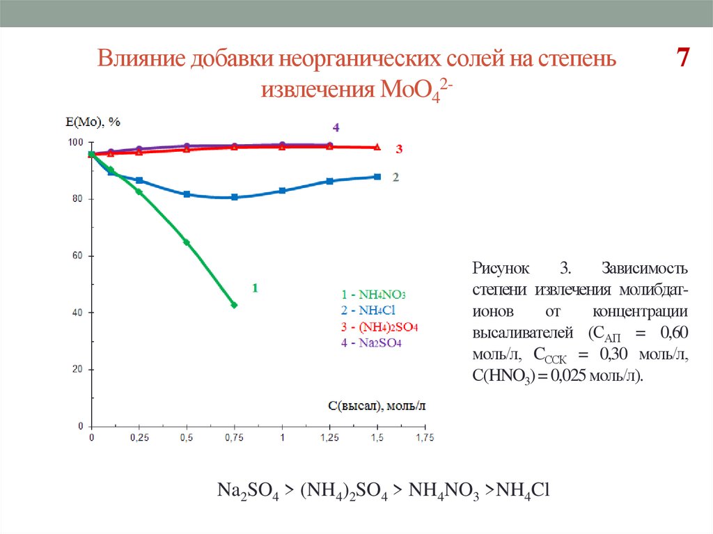 Влияние добавки неорганических солей на степеньизвлечения MoO42-