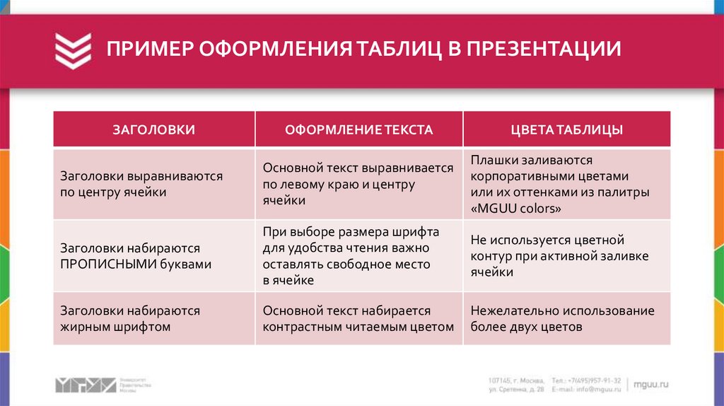 ПРИМЕР ОФОРМЛЕНИЯ ТАБЛИЦ В ПРЕЗЕНТАЦИИЗАГОЛОВКИ